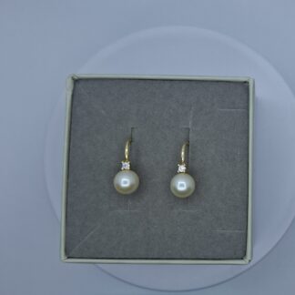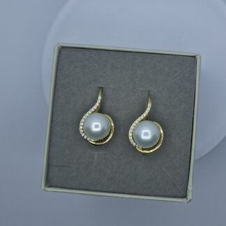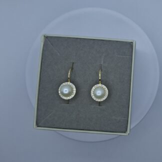 Arany gyöngyös fülbevaló, körbe csillogó cirkónia kövekkel. 5710