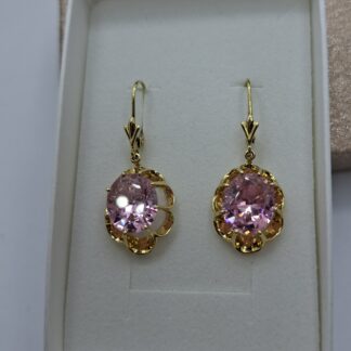 Arany lógós fülbevaló, rózsaszín kővel. 5581