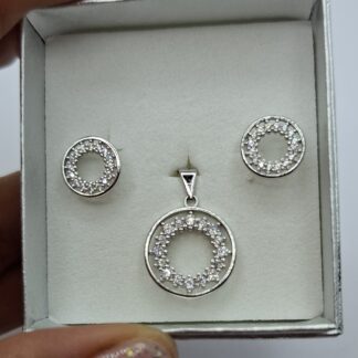 Ezüst kör bedugós fülbevaló és medál szett 5585
