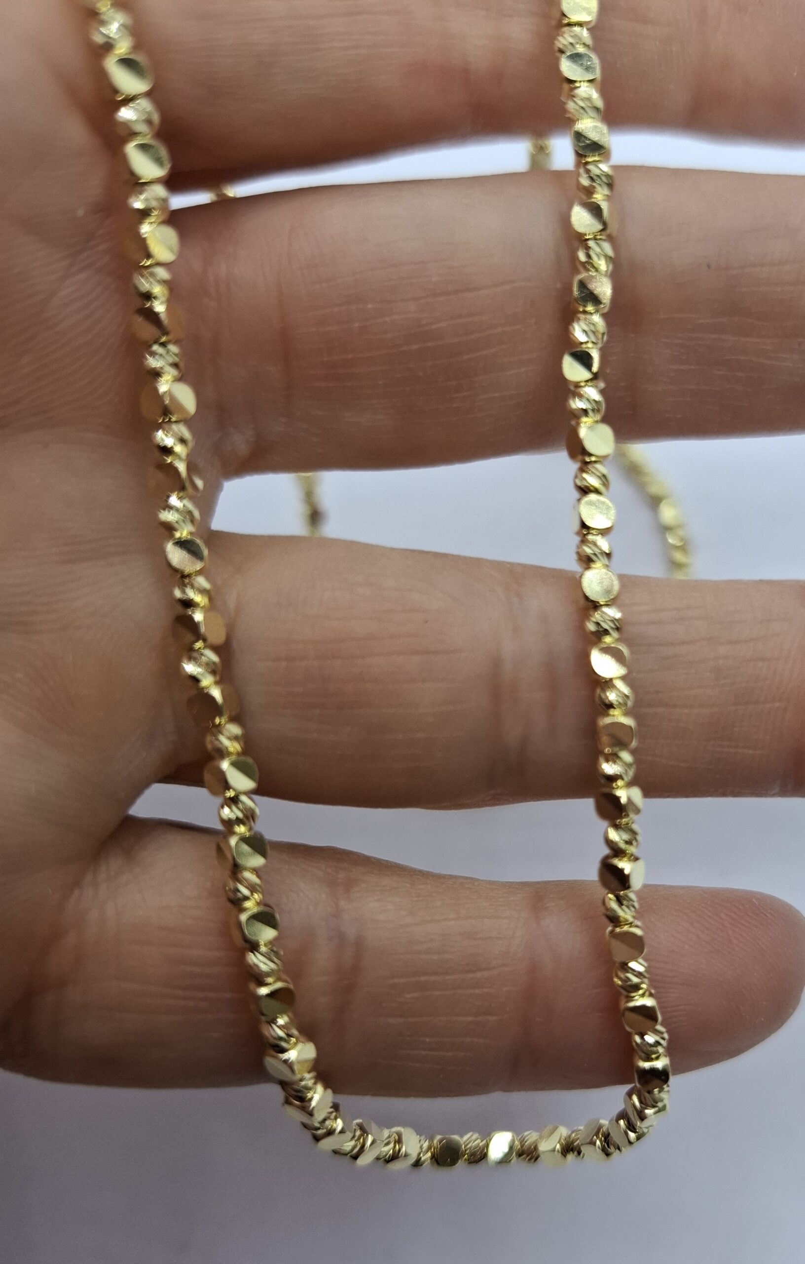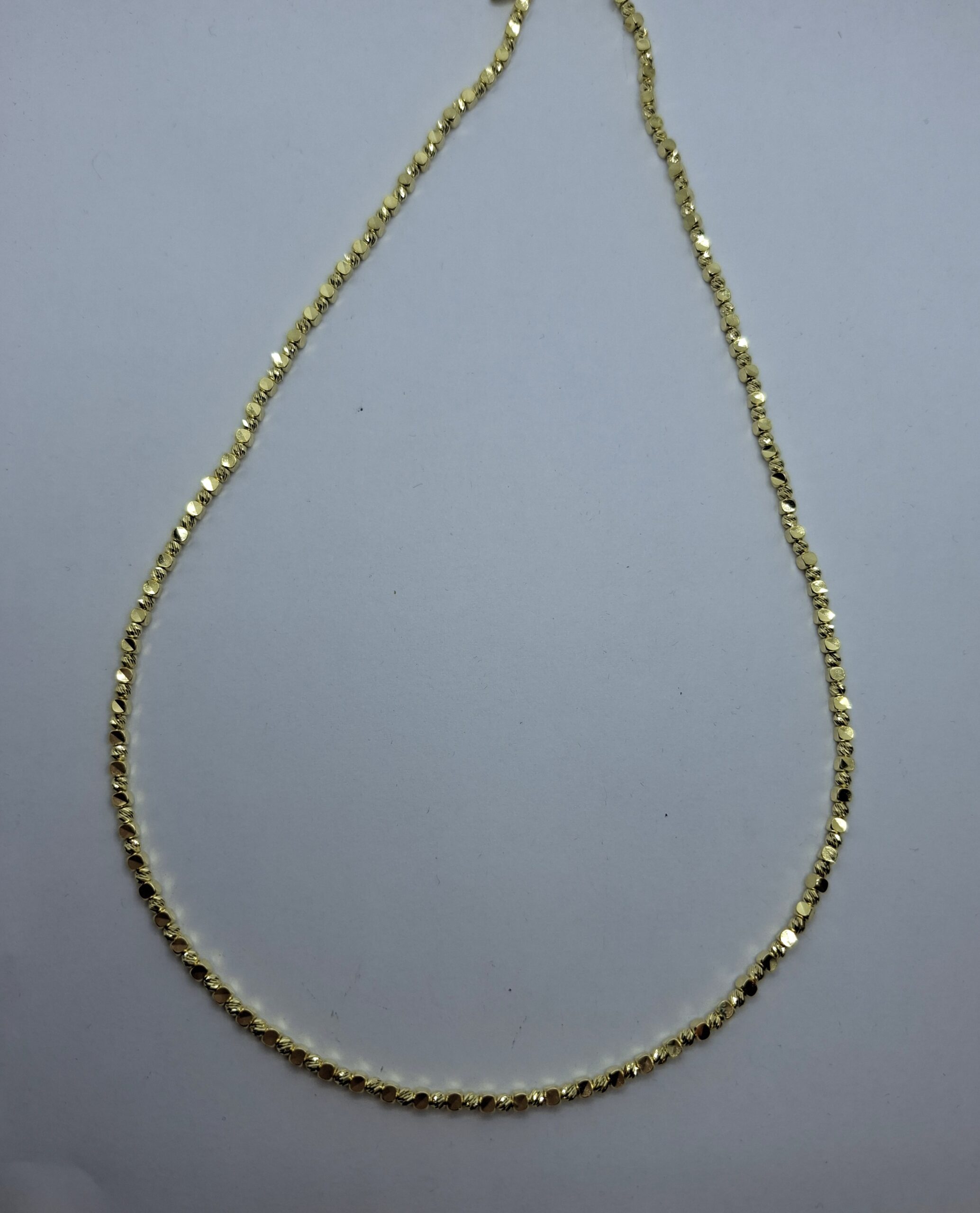 Sárga arany lánc gyémántvésett tükörcsiszolt. Hossza:45cm, vastagsága:2,5mm, súlya:10,5gr, 14kt. Mutatós!