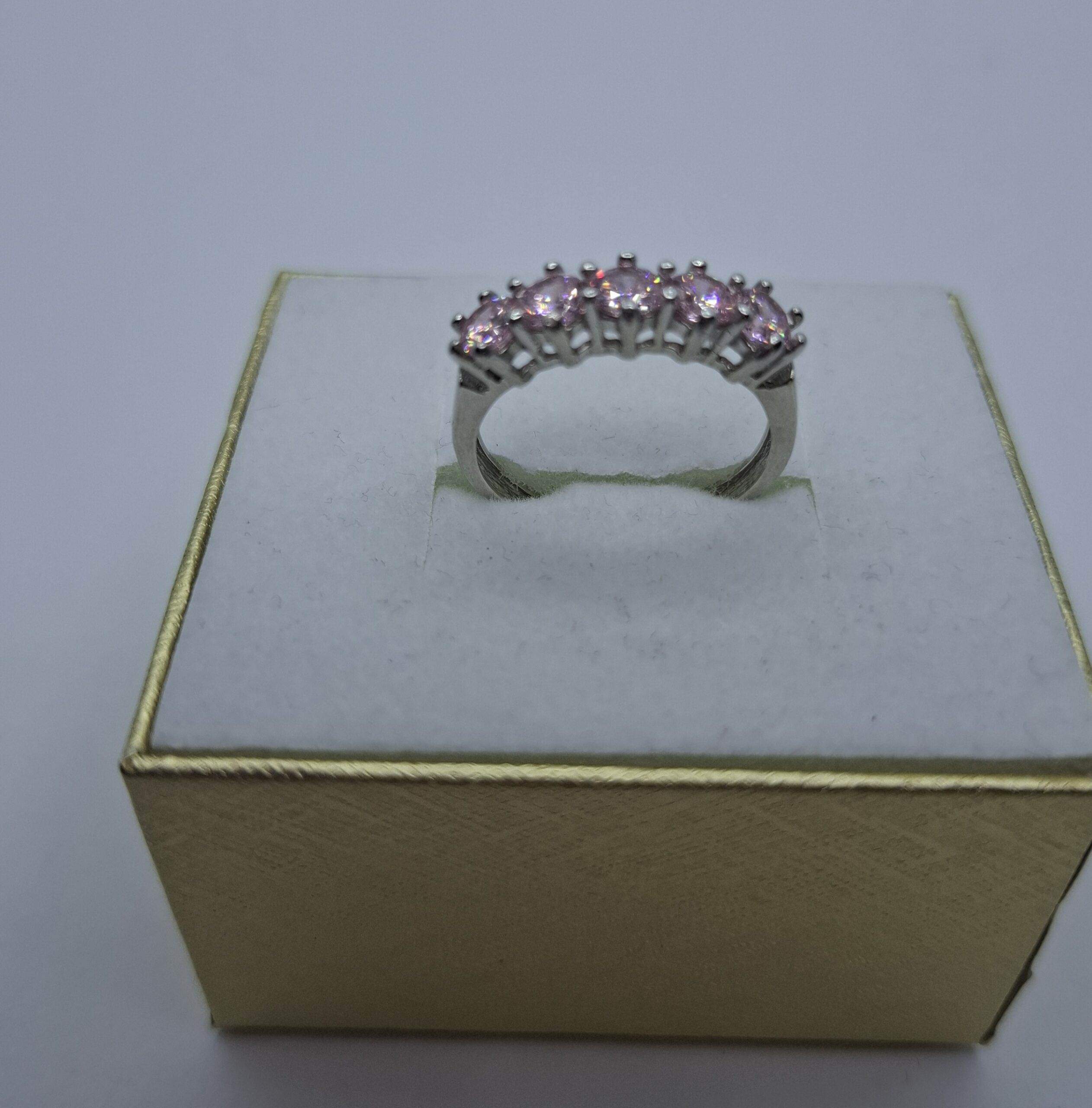 1 db ezüst gyűrű halvány rózsaszín kövekkel. Gyűrű:55méret. A rózsaszín köveknél a szélessége:5,4mm, alul a sinje:2,5mm. Súlya:2,5gr, 925 ezr.ezüst. Mutatós!