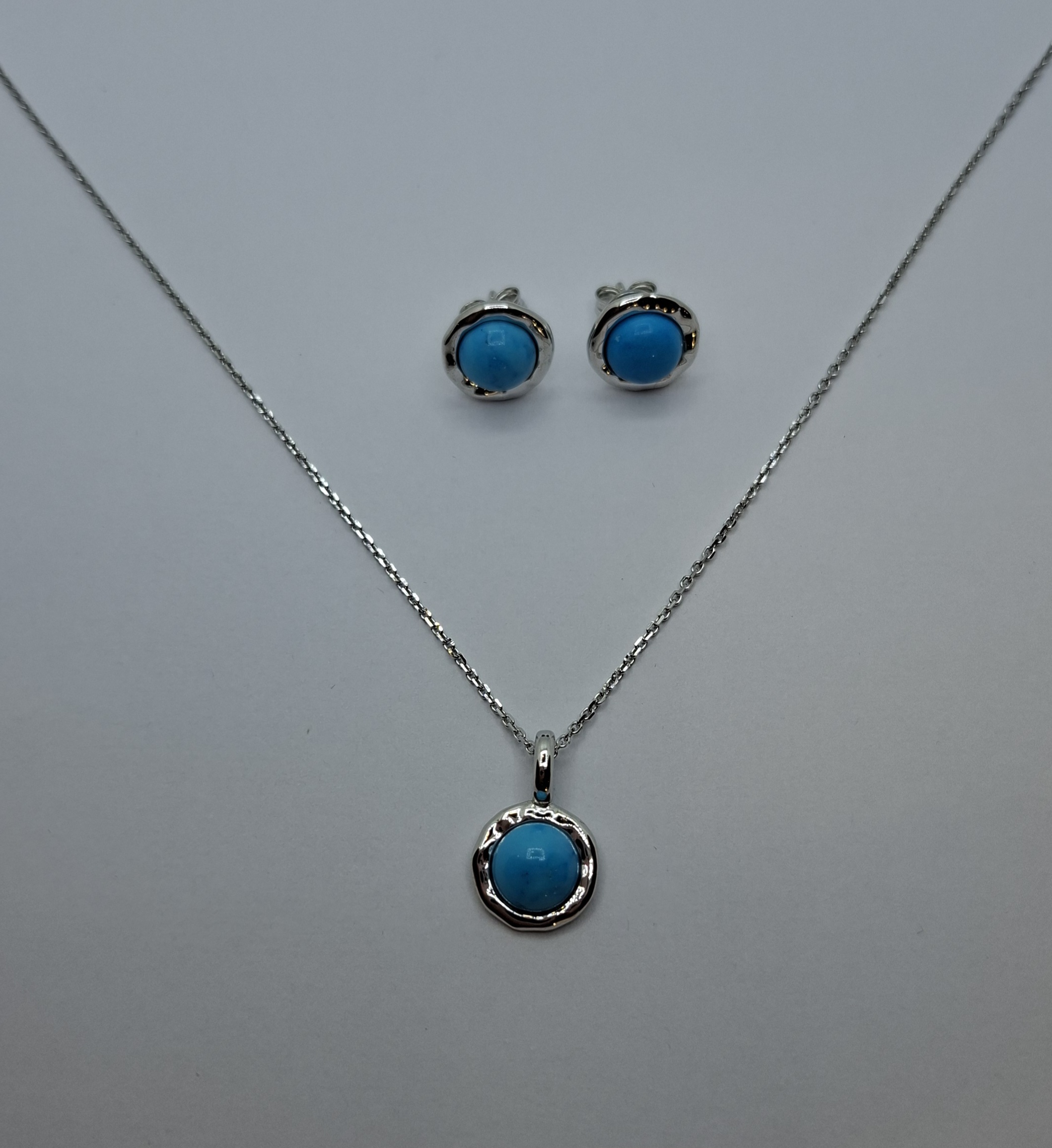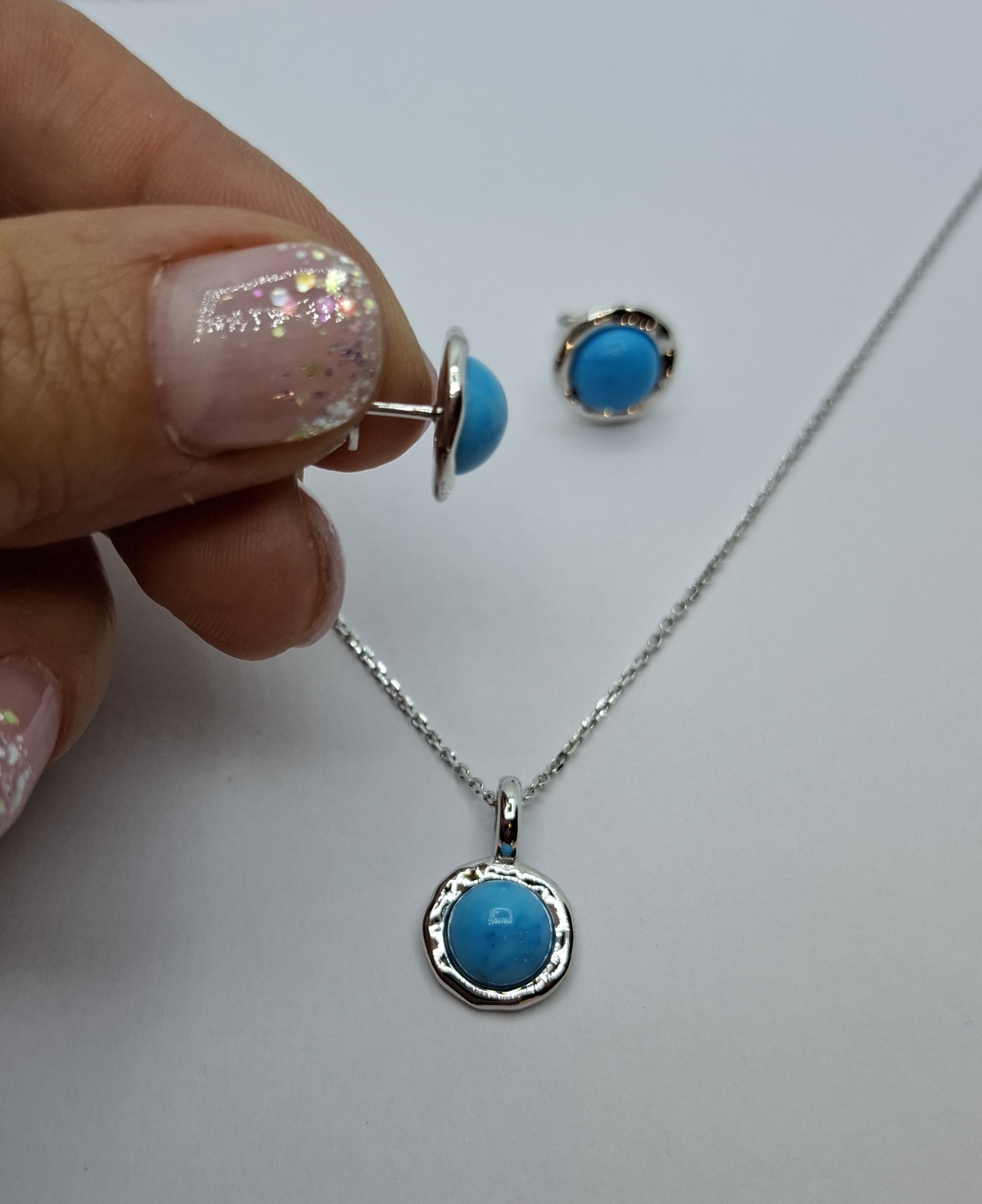Ezüst türkiz köves bedugós fülbevaló, medál nyaklánccal. 5592