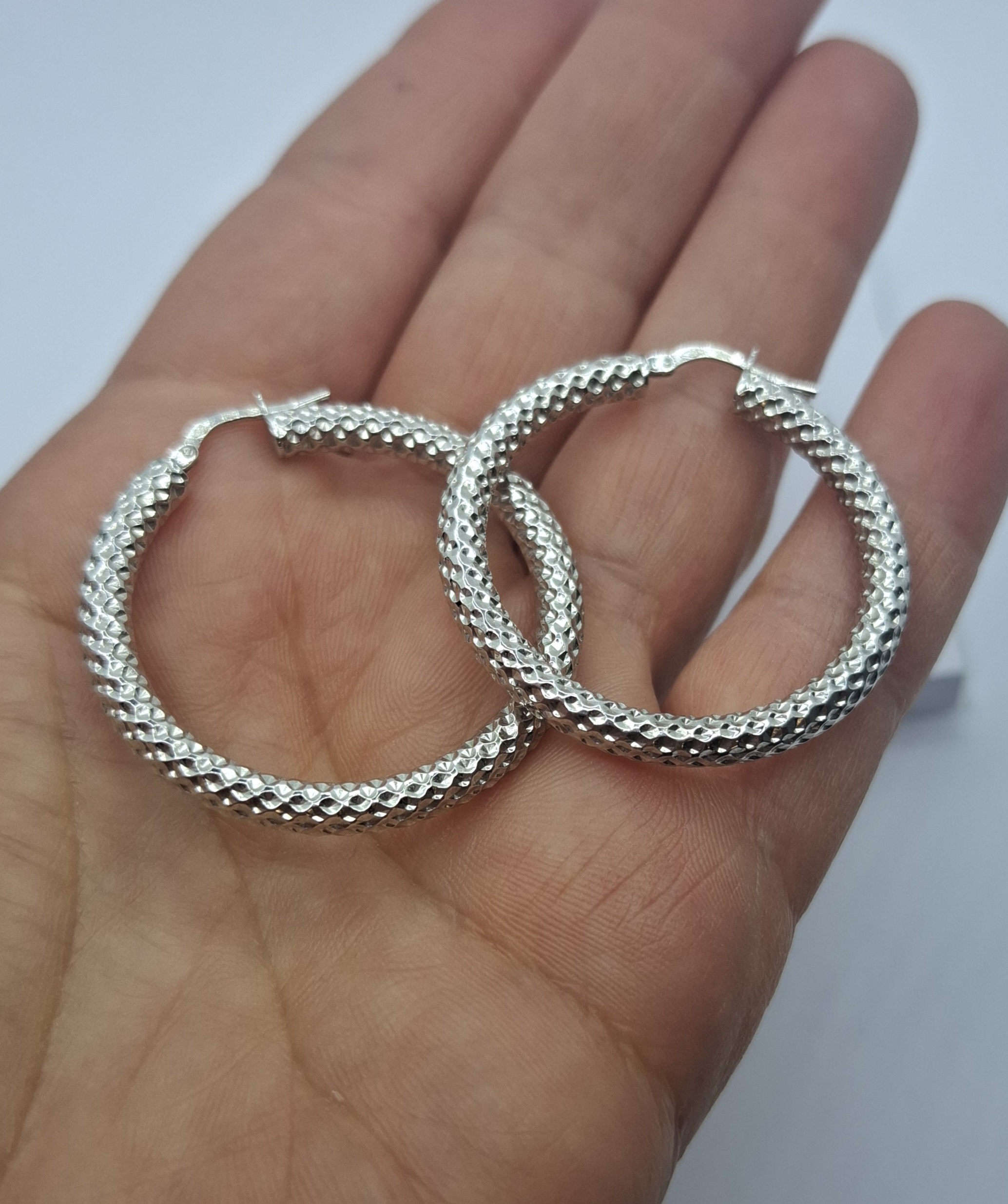 Fehér arany karika fülbevaló:3,7cm, csillogós. 5639