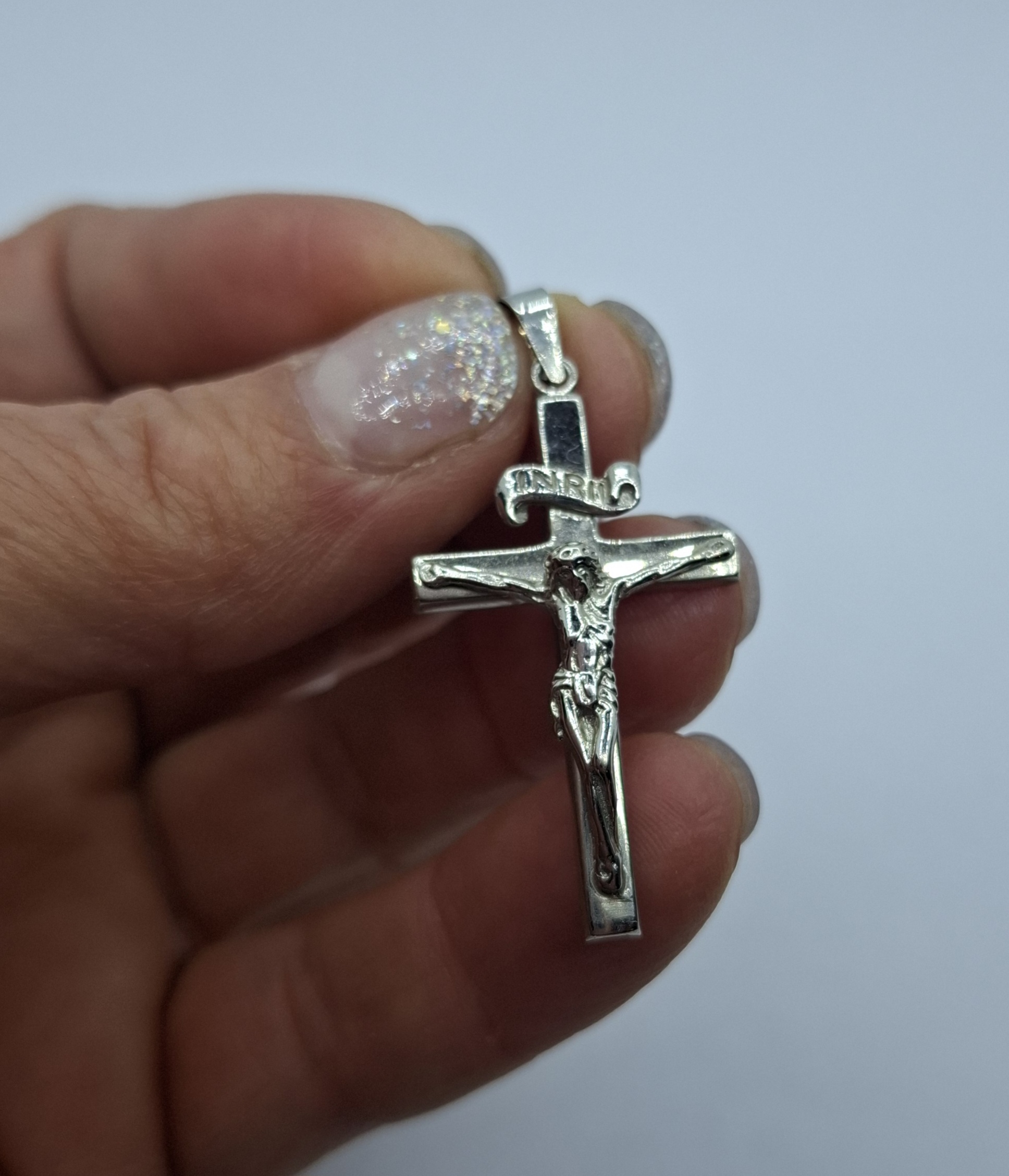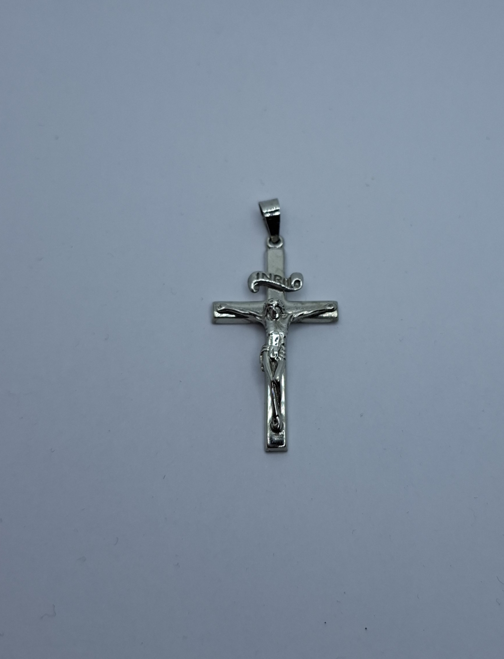 Fehér arany kereszt medál feszülettel, 2,7gr, 14kt. Hossza:3,5cm, szélessége:2cm.