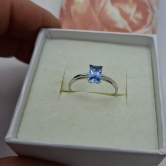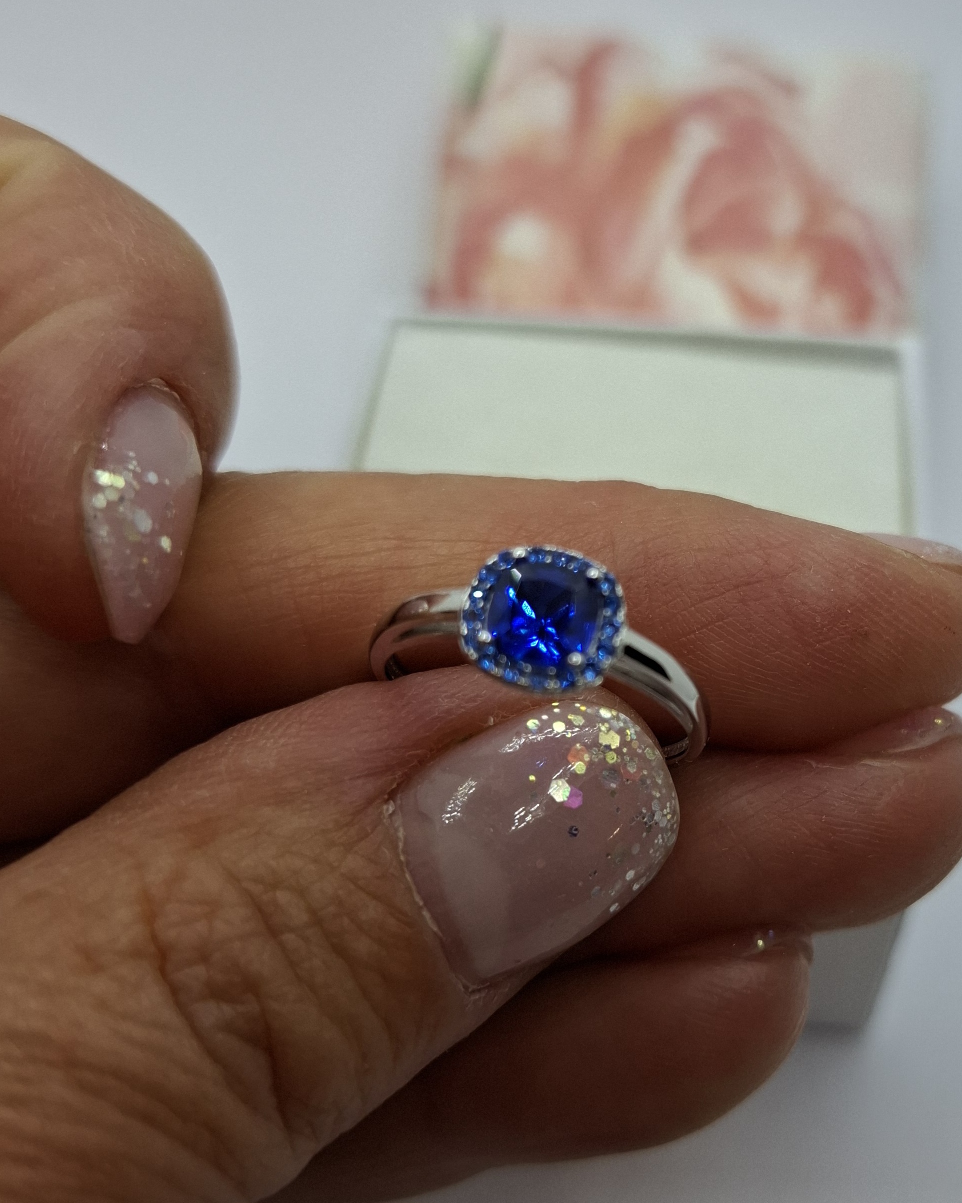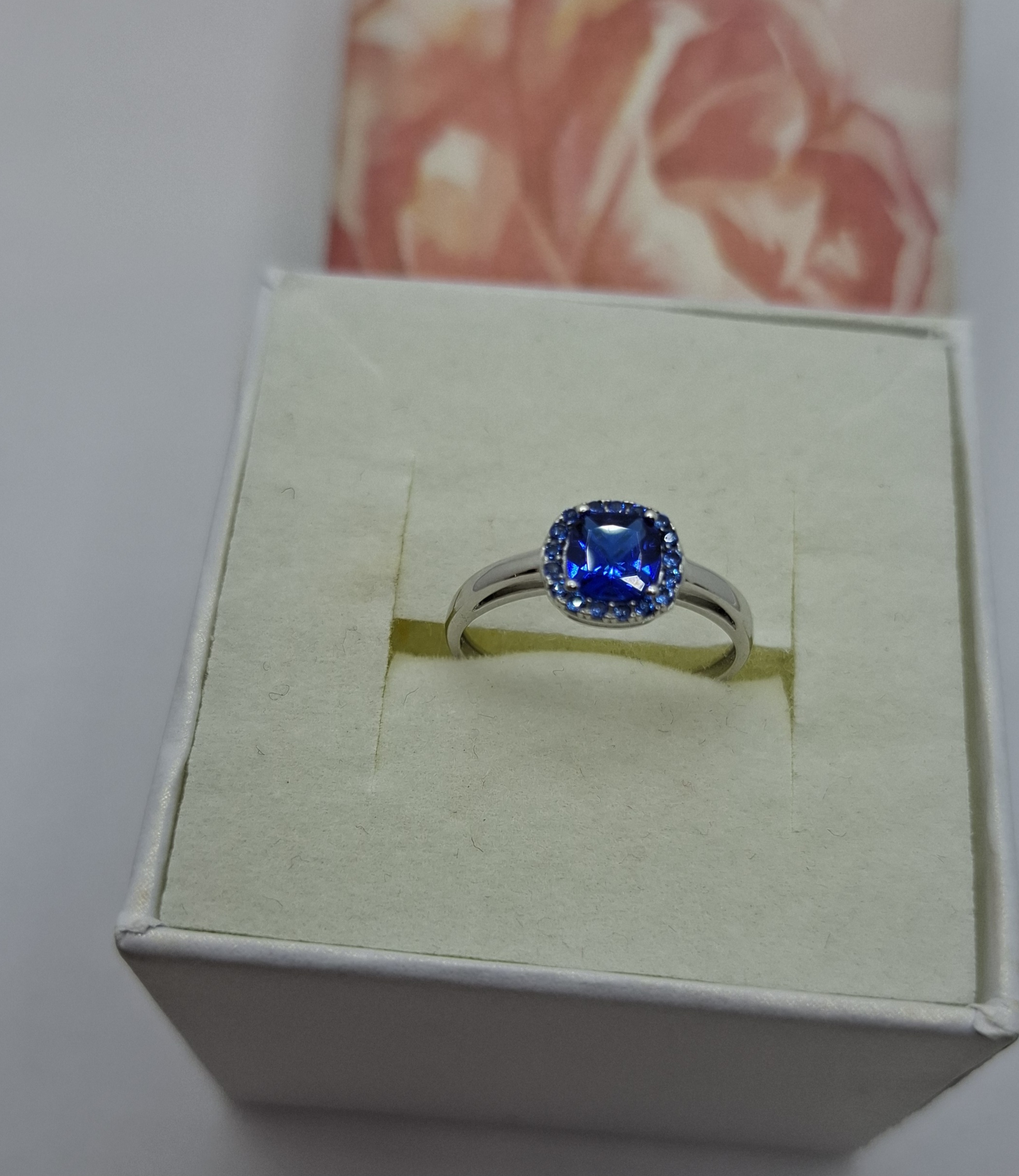 Fehér arany női gyűrű királykék kövekkel. Gyűrű mérete:51, súlya:1,7gr, 14kt. A kék köves résznél:7mm, a sinje 2mm. Nagyon mutatós!